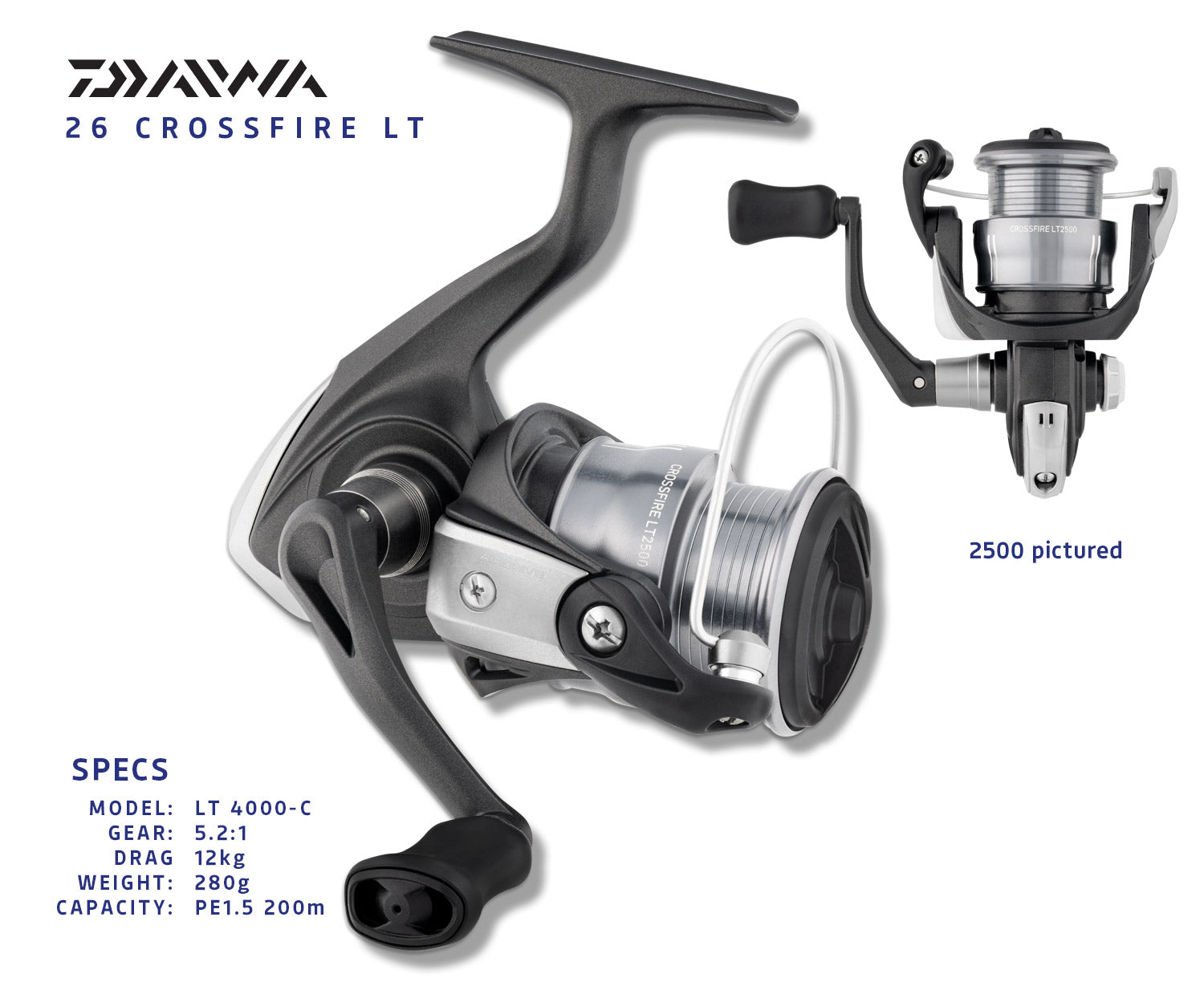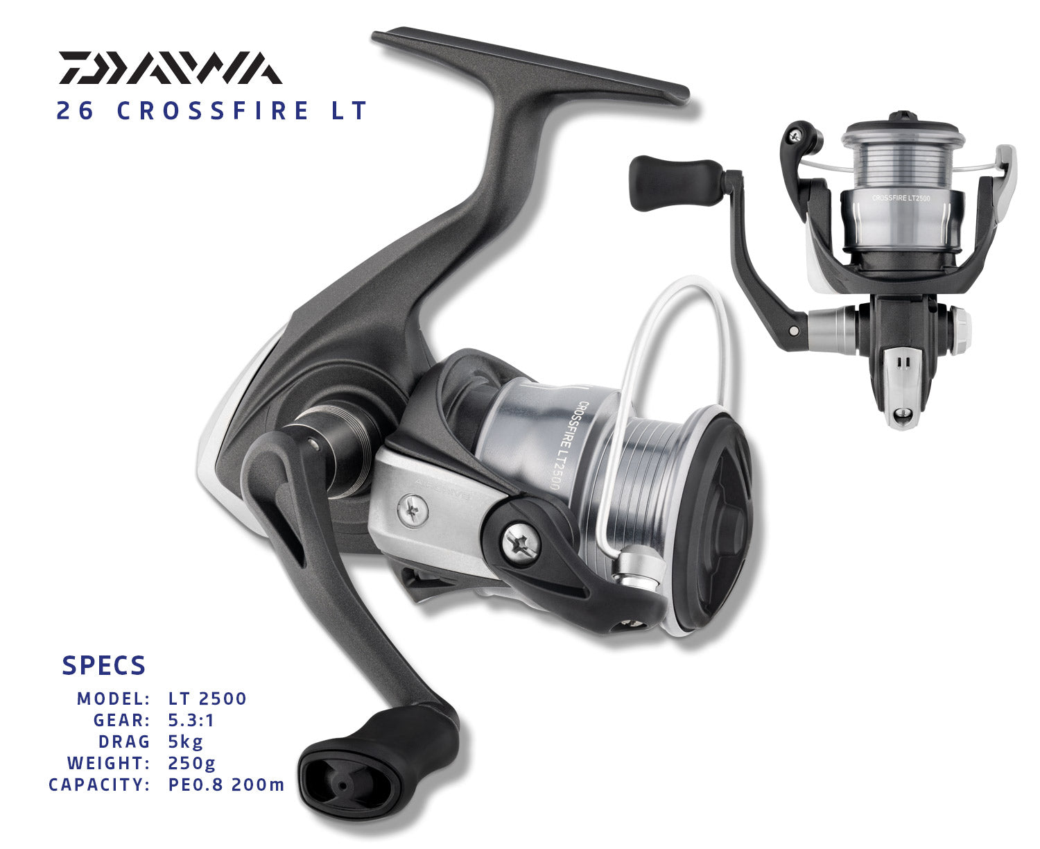The 26 Crossfire LT is a lightweight and durable spinning reel that delivers trusted Daiwa quality at an affordable price. Built around the LT (Light & Tough) concept, it features a compact design that’s easy to handle, making it ideal for beginners and everyday anglers.