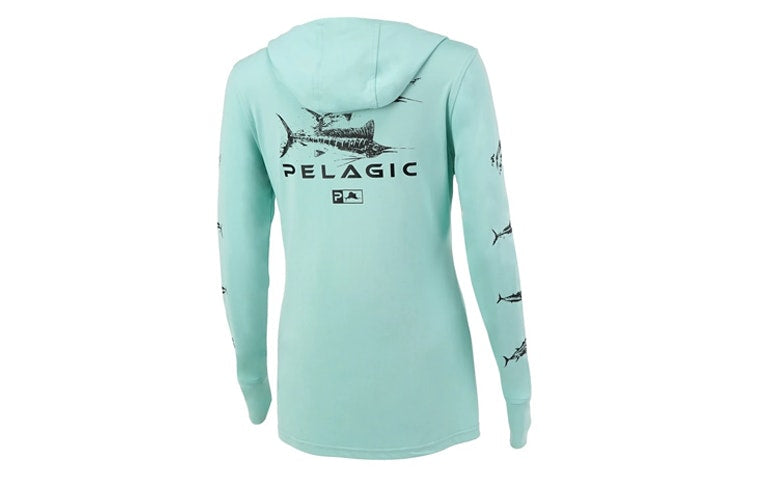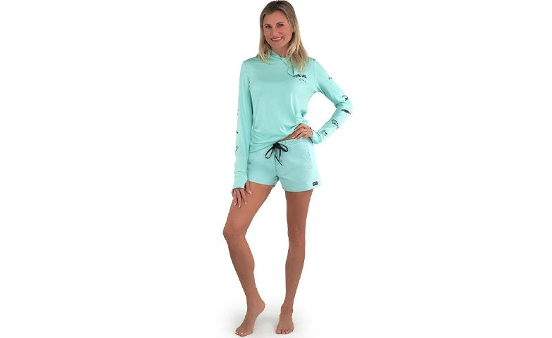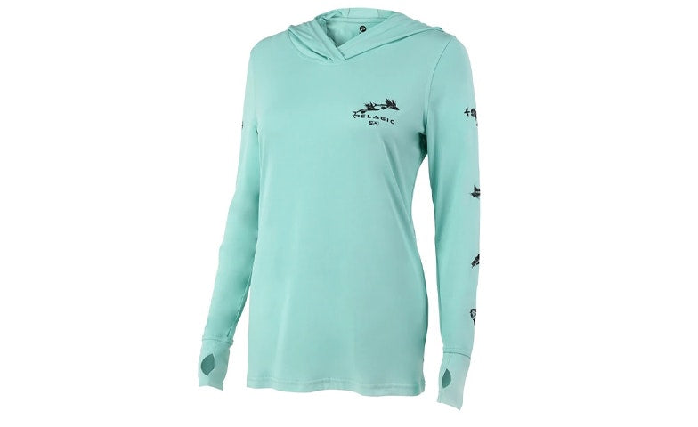 The Women's Ultratek Hooded Fishing Shirt was specifically designed for women who love to fish, spend time on the water, and also want to look good while they're doing it. These long sleeve hooded sun shirts are perfect for long days under the sun and provide protection from harmful and damaging ultra-violet rays. Made from only the highest quality of materials, the Ultratek Fishing Shirt is specially treated to provide an extra shield of water and stain repellency. Super lightweight, breathable, and built with moisture-wicking properties. Featuring original Gyotaku art, this limited-edition fishing shirt pays homage to the sea through the traditional method of Japanese fish printing. Materials 100% Nylon