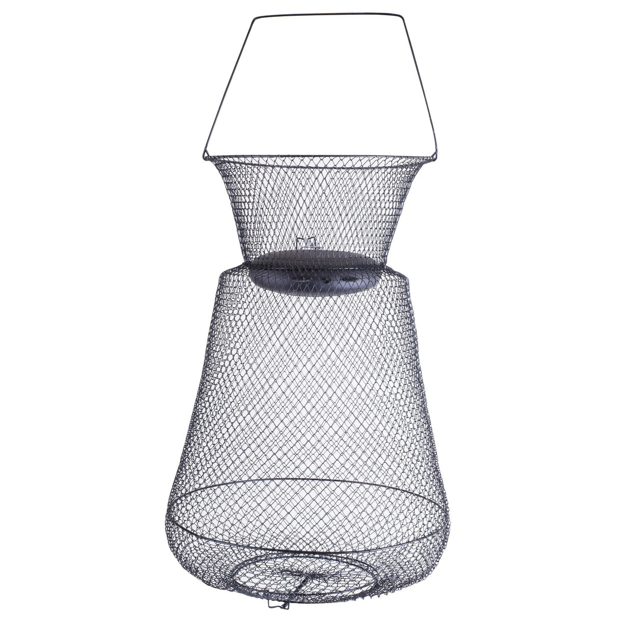 Anglers fishing with live bait will find the Wire Keeper Basket the best way to keep their bait alive and well. Featuring a 150mm, spring loaded trapdoor at the top for easy access, the keeper net is of robust construction with the mesh and ring frames made from metal. TIP: After use rinse the basket in fresh water to remove corrosive materials like salt.