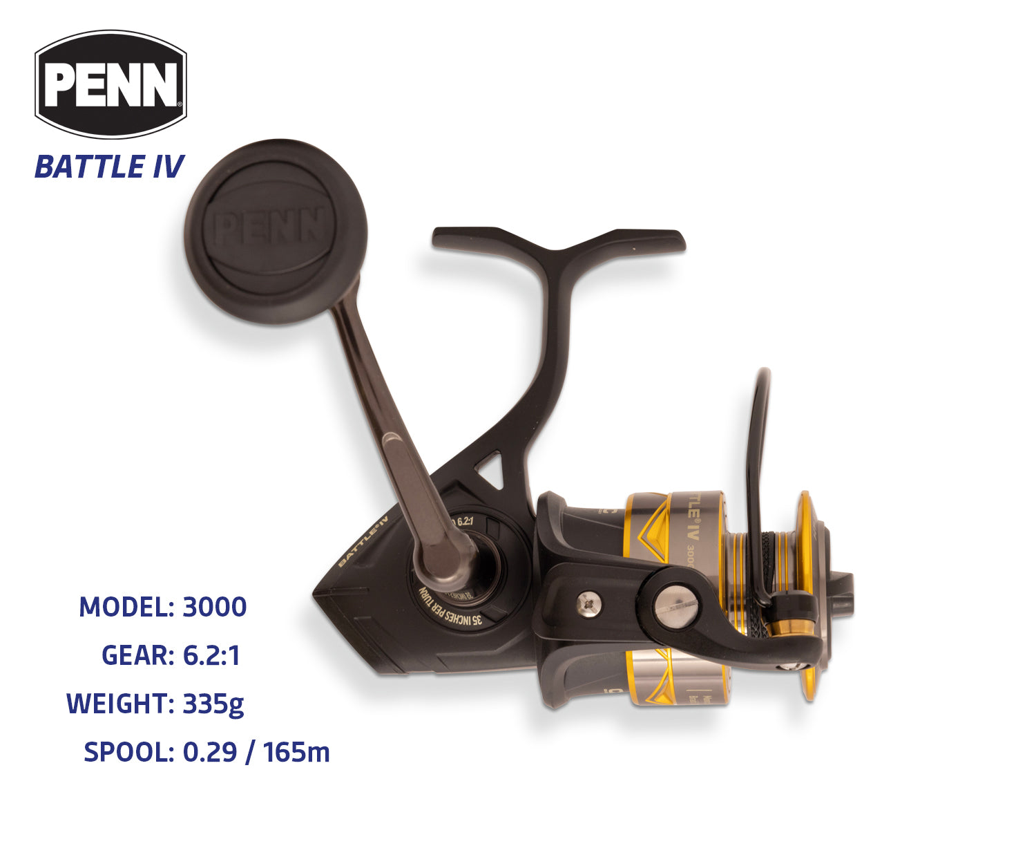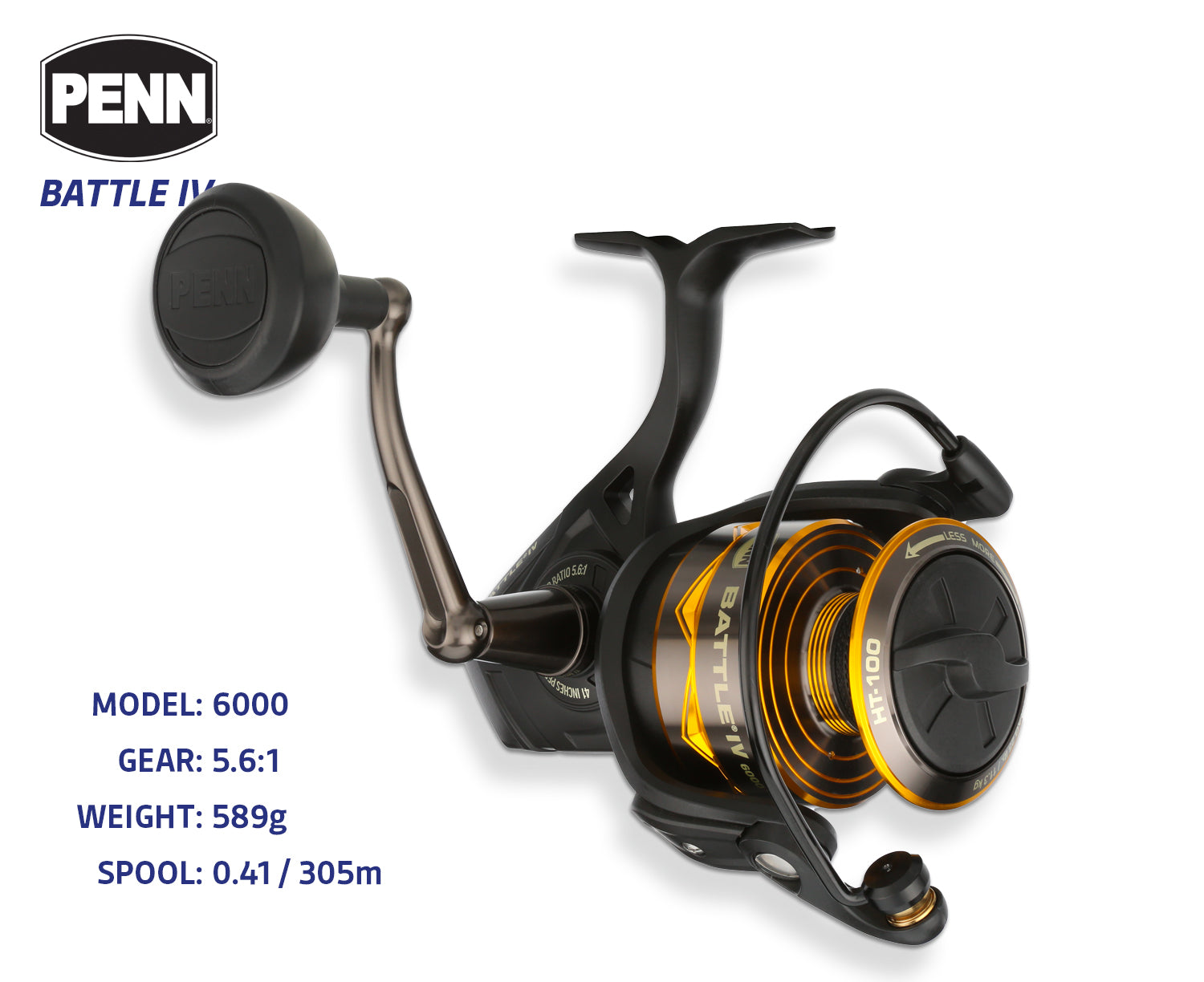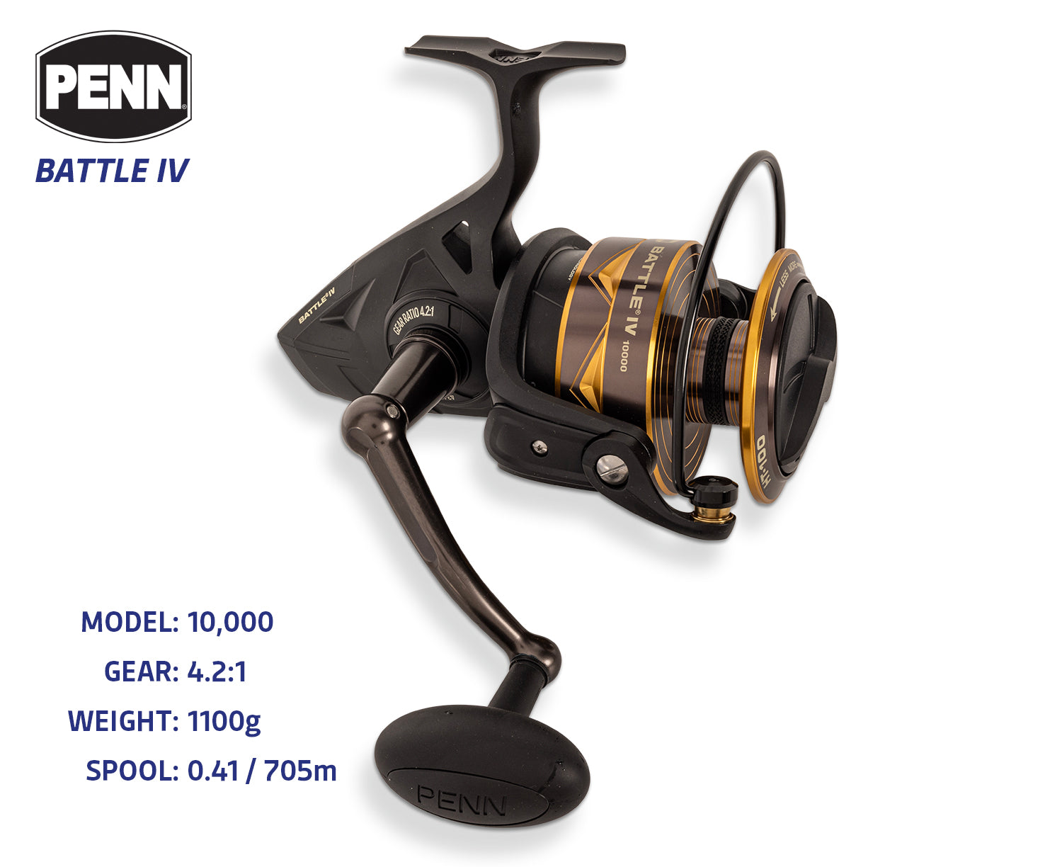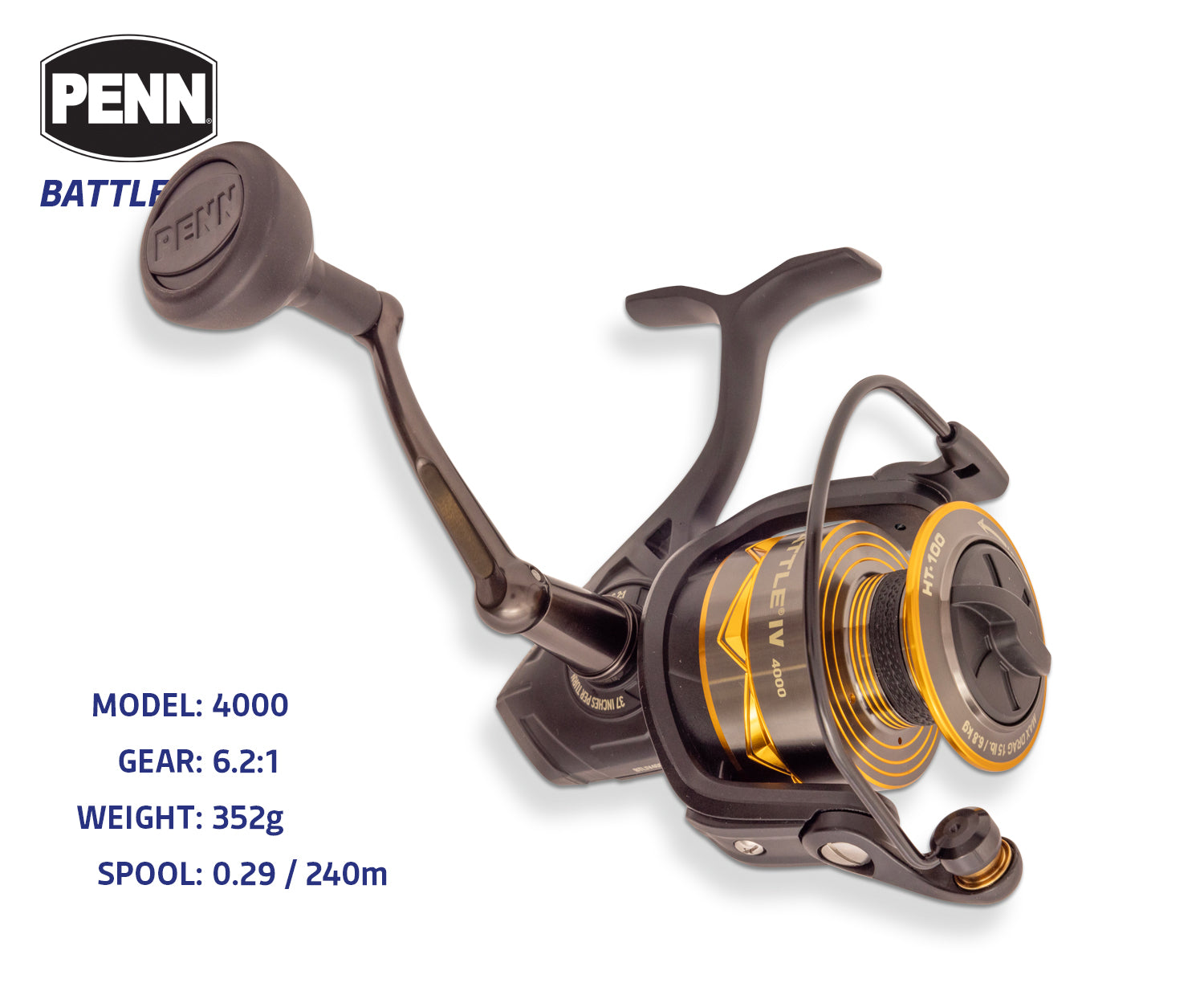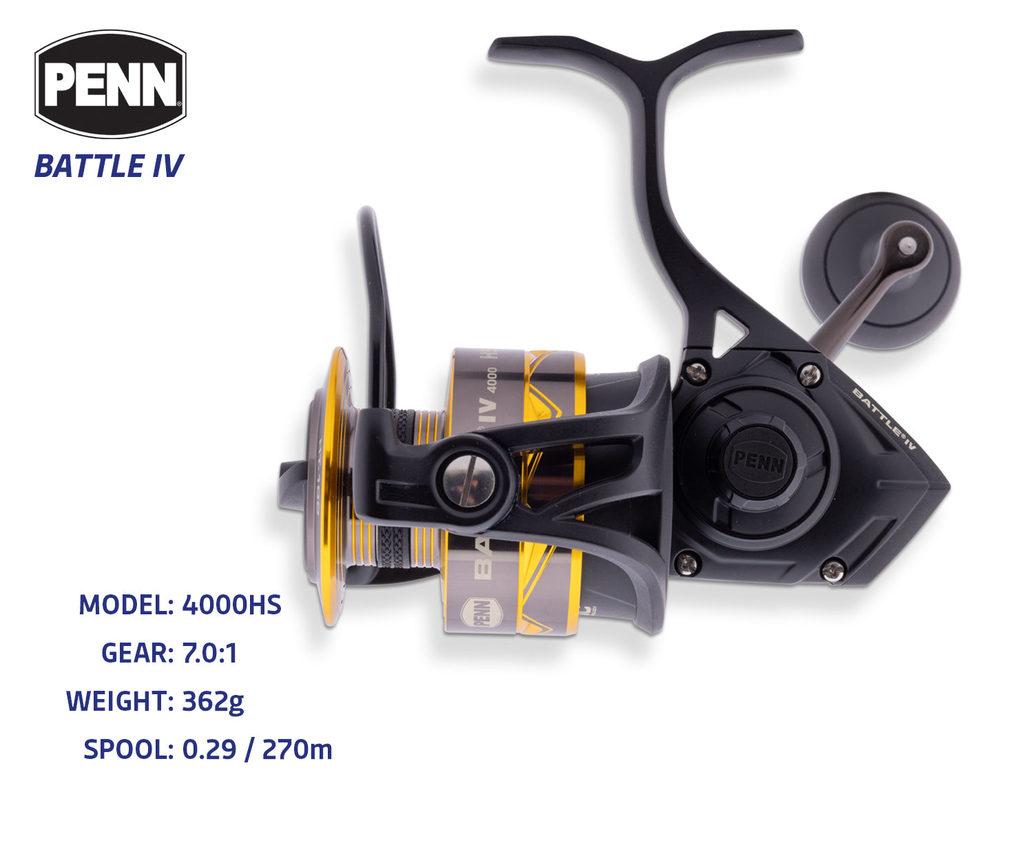The PENN Battle IV is stronger and more durable than ever before. The Battle IV features our Hydro Armor sealing system that protects critical components no matter how harsh the conditions. The Battle IV combines our proprietary CNC Gear Technology, proven HT-100 carbon fibre drag system, and a Full Metal Body to deliver a reel built to withstand the force of big fish. Ranging in size from 2500 to 10000, the Battle IV series has a model for every angler.