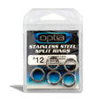 Optia Stainless Steel Split Rings are high-quality split rings that can be used to upgrade any lures you buy that come rigged by default with split rings that aren't very strong. Each packet gives you the size of the rings along with the tested strength before failure. With sizes ranging from 00 to 12 you can rig any lure you want from super small micro lures through to extra large trolling and casting lures.