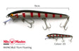Nils Master Invincible lures are the hottest of the hot and cut above the rest - simply the best! A real fish catcher with its unique swimming action and colour combinations that have caught record amounts of big fish all over the world. Excellent for: bass, bream, flathead, salmon, trout, barramundi and large variety of other fish species. The Invincible has a slightly arched shape which produces a revolutionary swimming action. With a range of sizes from 5cm right up to the grand master' 25cm version. The 5cm and 8cm models are made of balsa wood, while the 12cm, 15cm 18cm, 20cm and 25cm models are made of abachi wood. The Invincible floats on the surface but just a slight retrieve or pull gets it diving with a swimming action that imitates a bait fish. When the retrieve stops the Invincible bobs back to the surface. The Invincible is easy to cast and is great for trolling.