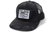 Front Pelagic tuna patch Vented mesh back panels Adjustable snapback closure Curved brim One size fits most Custom Pelagic print featuring marlin, sailfish, tuna, dorado & wahoo hidden in the camo design. Can YOU find the fish? Material: 60% Cotton 40% Polyester