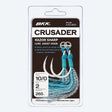 The BKK Crusader is an assist hook developed to cater to heavy-duty salt-water lure fishing and can be a performing alternative to common treble hooks, when reduction of torsional forces is most needed. In fact, the hollow-core assist cord provides more freedom of motion to the hook, resulting in a heightened hook up ratio and in a lower chance of the hook coming off. Besides, the single hook causes less damage to the fish, allowing for an easy and fast release. Additionally, shimmering fibers have been added to further enhance the attractiveness of your topwater lures. Finally, a strong in-line solid ring allows for an easy and strong connection to the split ring.