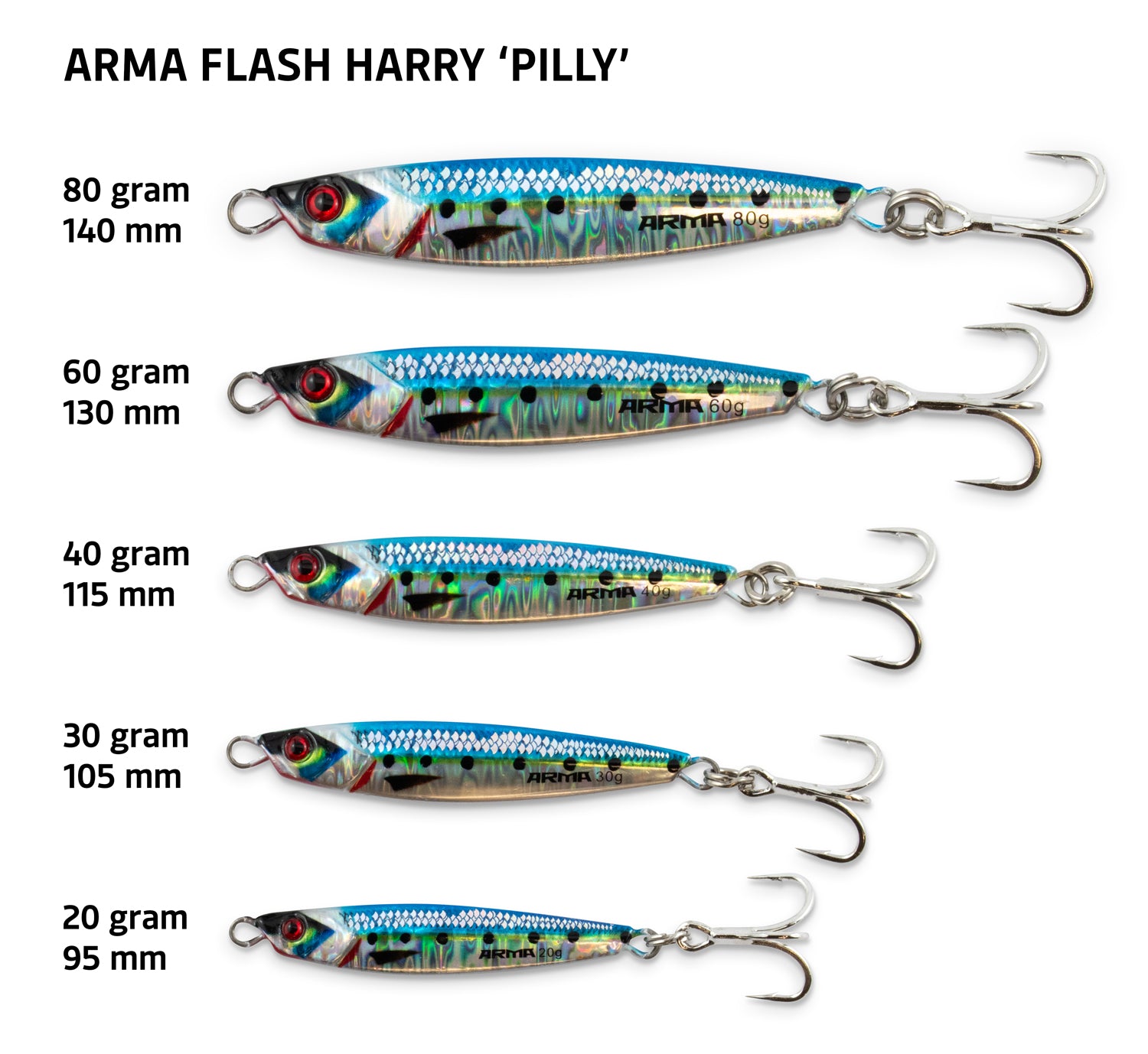 The ARMA FLASH HARRY has tough stainless steel split rings, an extra strong treble and heavy-duty wire making a strong saltwater resistant spinning metal.